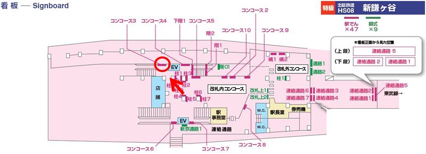 ホーム階へ上るエスカレーターの手前に位置しているため、多くの利用者の動線上にございます。