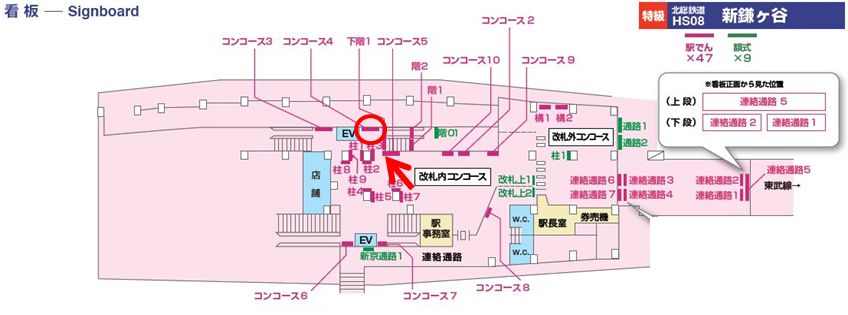 コンコース№4は下り線ホームへと繋がるホーム階段下に位置しております。