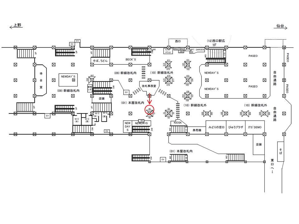 最も改札に近いエリアにある柱の看板で、宇都宮駅構内を行き来される方にご覧頂けます。