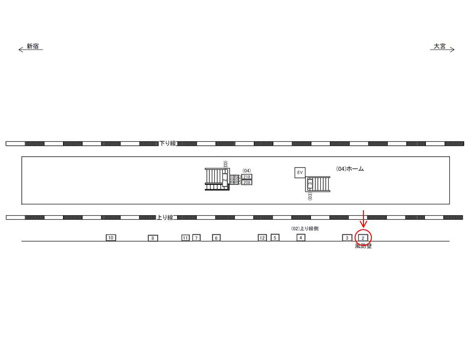 ※№2は進行方向の後方、埼京線ホームの大宮寄りにございます。