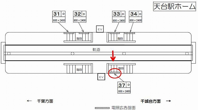 千葉都市モノレール天台駅上りホームの広告看板です。