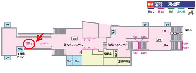 スタンド№2は改札内に設置された休憩スペースの目の前にございます。