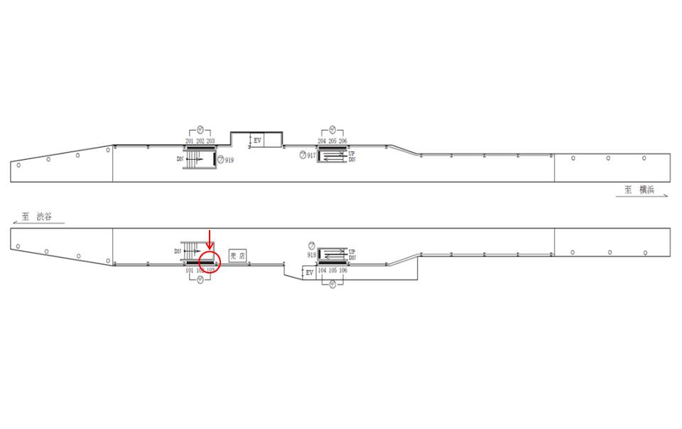 改札階へ向かう階段付近にあり、ホームの中でも駅利用者が滞留しやすいエリアで、広告接触がより期待できるロケーションです。