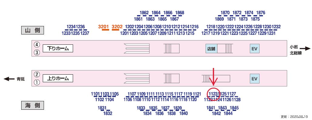 京成線 高砂駅の1番線ホーム(京成本線:青砥・日暮里・上野方面/京成押上線:押上・都営浅草線・京急線方面)線路前の看板です。ホームで電車を待つ際に見えます。