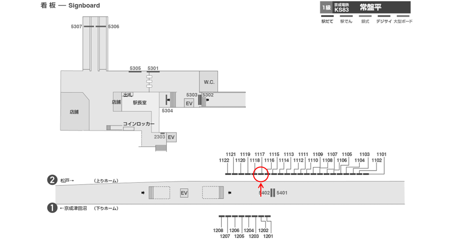 京成 常盤平駅の上りホーム(八柱・松戸方面)の線路前の看板です。ホームで電車を待つ際に見えます。