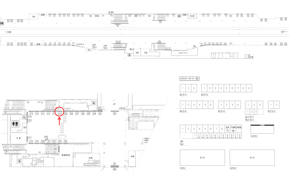 『東武 川越駅 №210』は、改札内コンコースの壁側に設置されております。