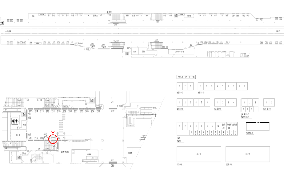 『東武 川越駅 №222』は、改札内コンコースの壁側に設置されております。