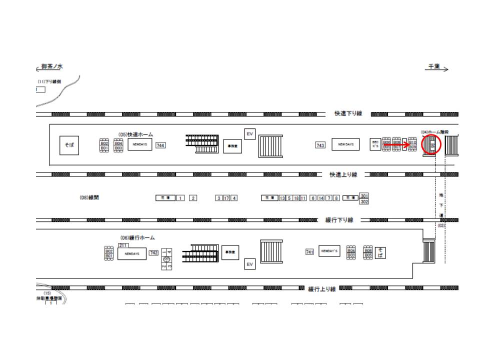 JR総武線 錦糸町駅の乗り換え専用のホーム階段上の看板です。横須賀線総武線快速から総武線の各駅停車へ乗り換える際に見えます。