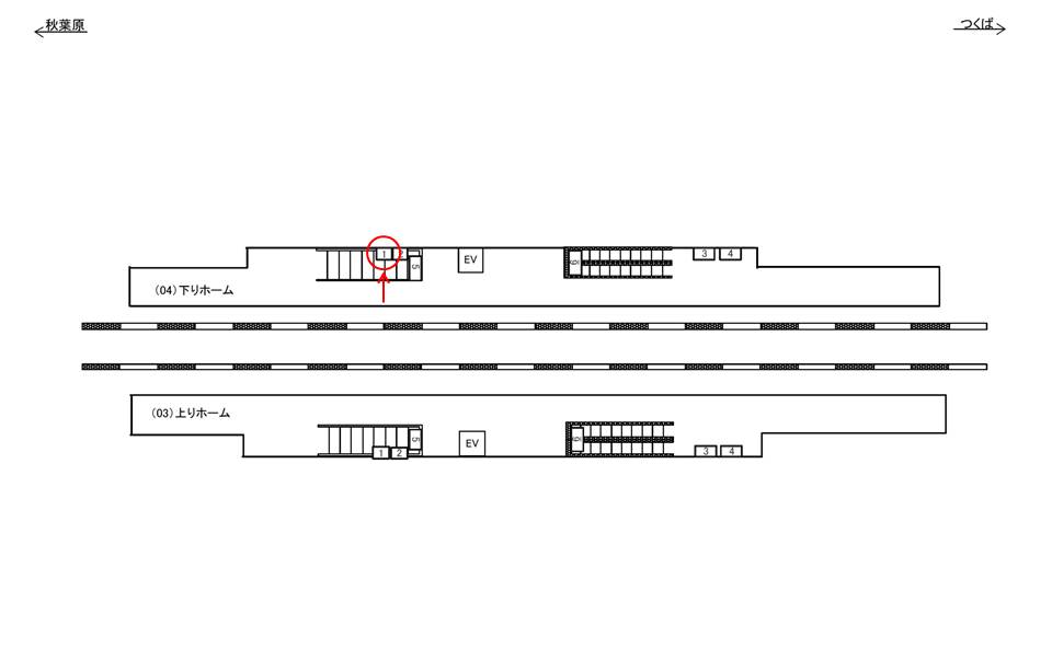 柏の葉キャンパス駅のプラットホームは上り下りのホームが向きあう相対式の二面ホームです。この看板はつくばエクスプレス線つくば方面ホームの背中壁面に設置されています。下りホーム上を行き来する方や、対岸の上りホームにいる方に線路を挟む形で見てもらえる位置です。