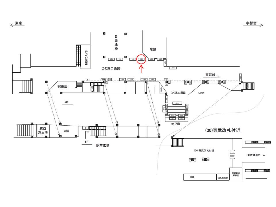 ○東口通路№182 改札外コンコース(東口側) |