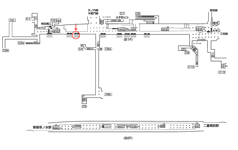 ○千代田線№38 改札外コンコース(神田橋方面改札/C3出口付近) |