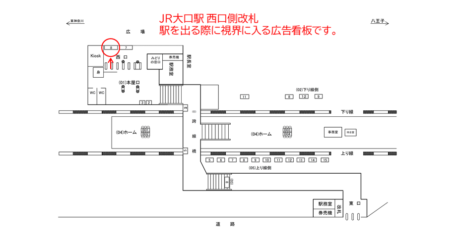 駅看板「JR 大口駅 本屋口№8」は大口駅西口エリアにある広告看板です。