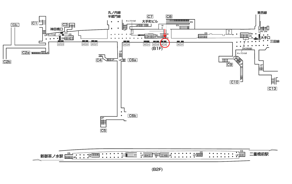 ○千代田線№38 改札外コンコース(神田橋方面改札/C3出口付近) |
