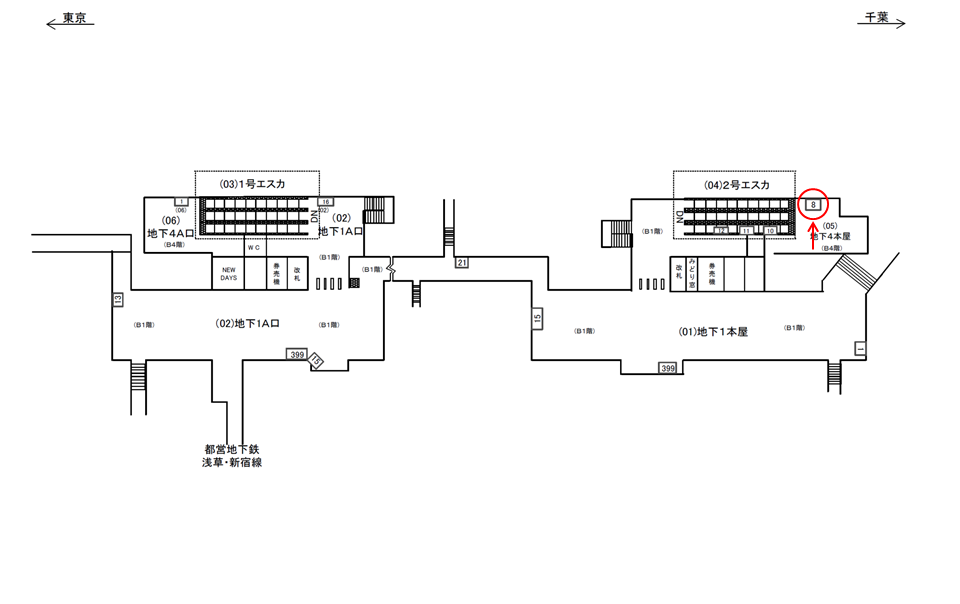 改札とホームと繋ぐ地下4階エスカレーターそばにある広告看板です。構内壁面に設置された電飾タイプの広告看板です。東口改札へ向かわれる方、東口改札から総武線(快速)をこれから利用される方にご覧頂ける場所にございます。