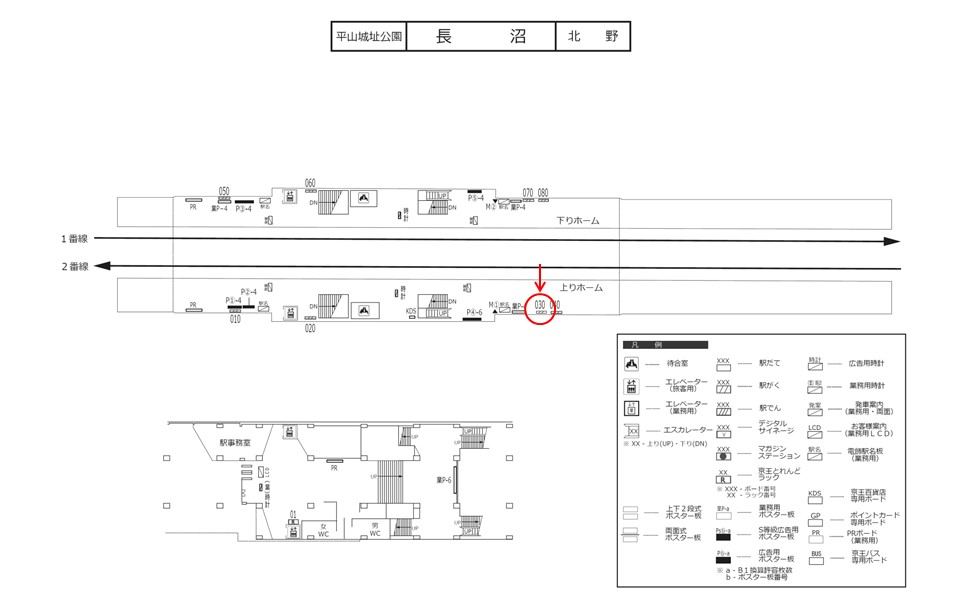 京王 長沼駅、ホームの駅広告(駅看板)設備のご紹介です。