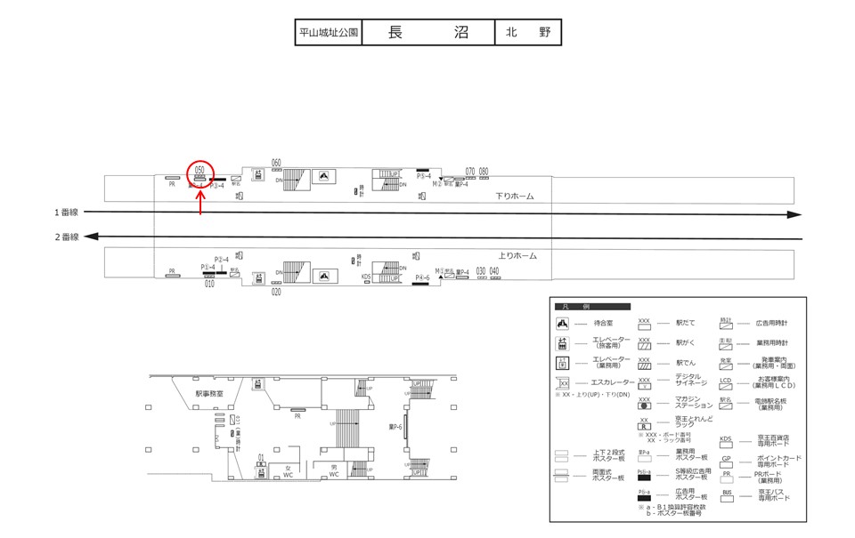 京王 長沼駅、ホームの駅広告(駅看板)設備のご紹介です。