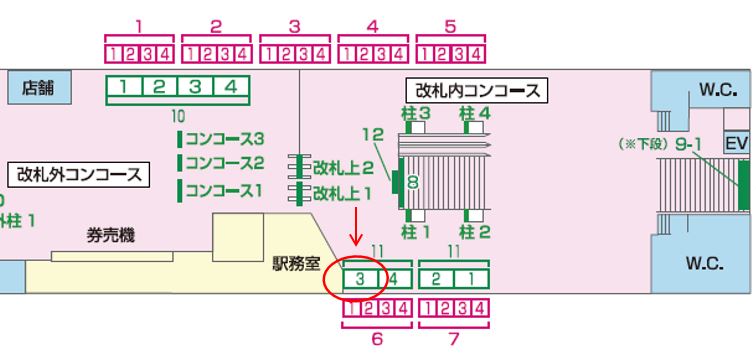 ホーム階段と改札の間に位置しているため、乗降時いずれの方向からでも接触が可能です。