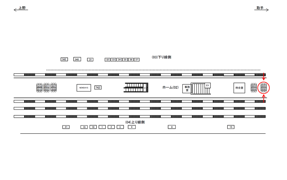 駅看板「JR 亀有駅 ホーム№B05&№B06」
