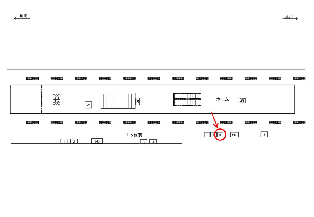 駅看板「JR 武蔵新城駅 上り線前№9」の広告ロケーション