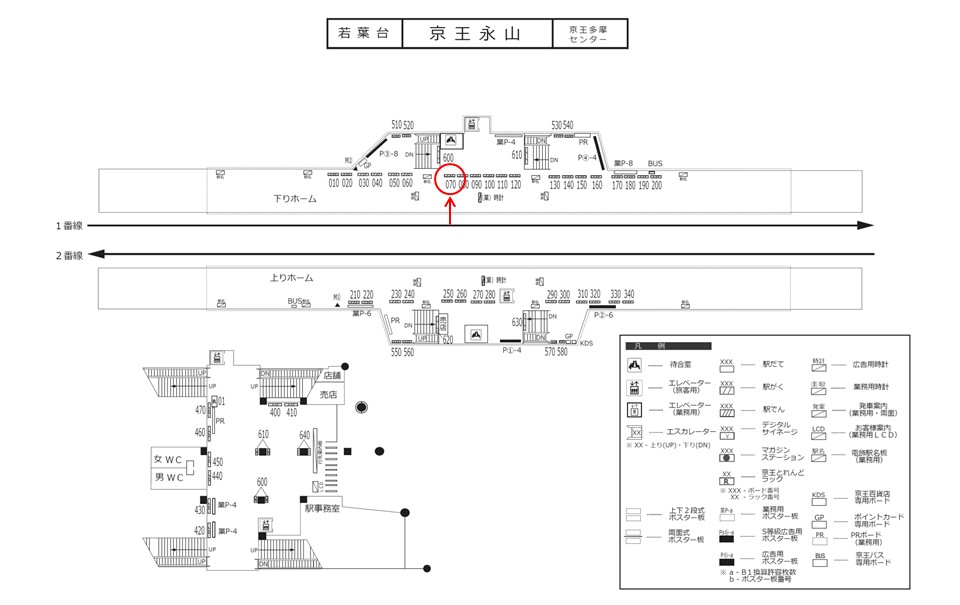 ■ 駅看板「京王 京王永山駅 駅でん№70」の広告ロケーション