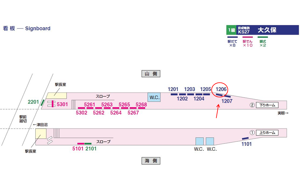 佐倉、成田方面を利用される方はもちろん、反対ホームからも見える看板です。