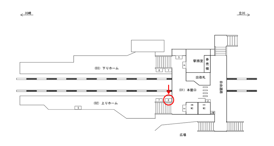 JR南武線(立川方面)上りホームの、改札階へ向かう階段付近に位置する看板です。ホーム内でも利用者の往来が集中する動線沿いに設置されており、列車の入線・発車前後のタイミングを中心に、乗降客の視界に入りやすい配置となっています。改札階へ向かう移動の流れと、電車待ちによる滞留が交差する位置にあるため、歩行中の利用者に対しても自然に視認されやすく、効率的なリーチが見込めます。加えて、待ち時間が発生する時間帯には継続的に視界へ入る環境が生まれやすく、一定時間広告に接触してもらえることから、メッセージの浸透や認知向上に寄与するロケーションです。