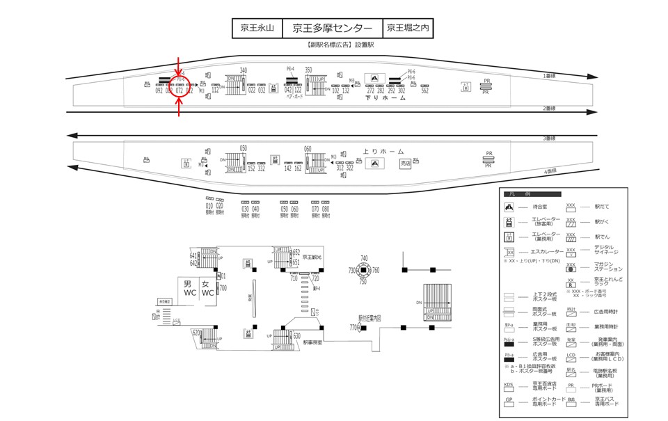 京王 京王多摩センター駅、ホームの駅広告(駅看板)設備のご紹介です。