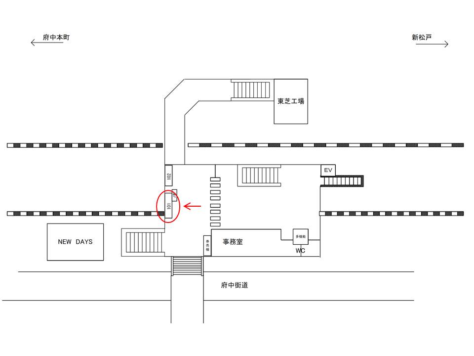 改札を出た正面に設置されており、北府中駅を出る方へ正対する位置にございます。