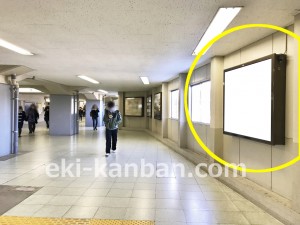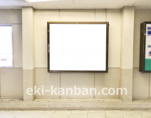 改札とホームを繋ぐ中間地点の横壁面にございます。京王線ホームに向かう方にも、改札出口(JR乗り換え含む)へ向かう方のどちらの方にもご覧頂けるロケーションです。