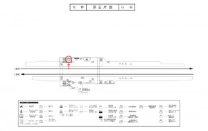 線路を挟む形にはなりますが、北野・新宿方面に向かう上り電車を待つ方に正対する位置にございます。
