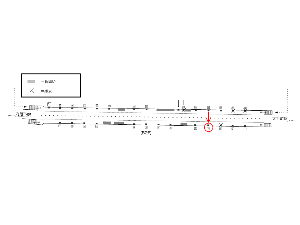 「東京メトロ 東西線 竹橋駅 №4」はホームの中でも大手町駅寄りにございます。竹橋駅を日々利用される方への広告として、ご利用ください。