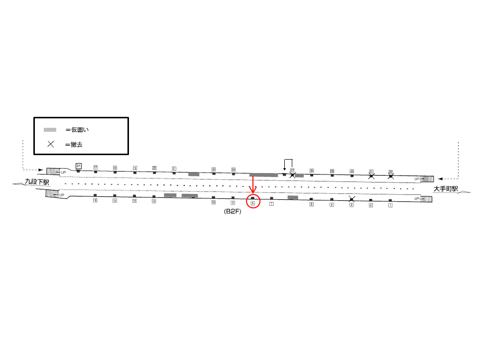 「東京メトロ 東西線 竹橋駅 №8」はホームの中でも中程、大手町駅寄りにございます。竹橋駅を日々利用される方への広告として、ご利用ください。