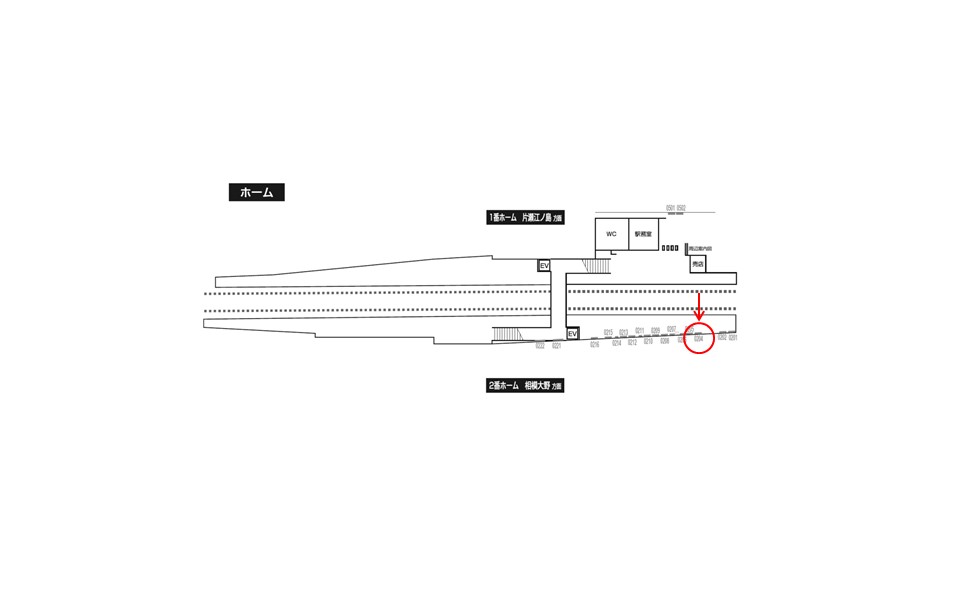 「小田急 藤沢本町駅 駅だてボード№204(右側)」は相模大野・新宿方面に向かう上りホーム背中に設置された広告看板です。上り電車を待つ方に近い距離で広告を見てもらえる場所です。また線路を挟む形ではありますが、片瀬江ノ島方面に向かうホームに正対する位置にあります。