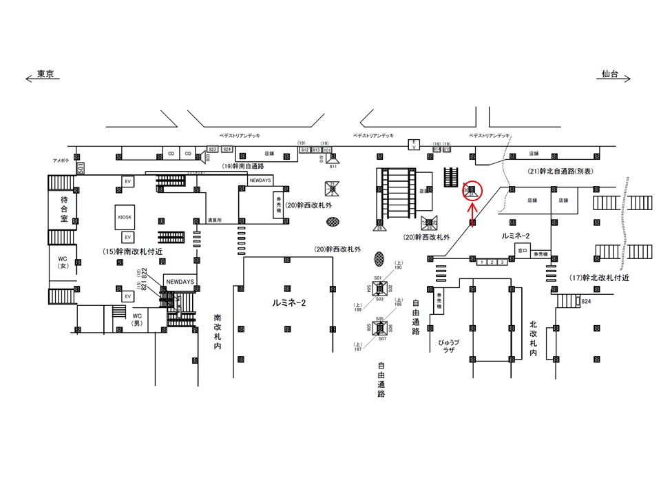 ○幹西改札外№29 改札外(西口コンコース・ニューシャトル方面) |
