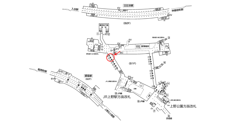 東京都台東区に所在する東京メトロ銀座線の駅です。東京メトロ日比谷線のほかJR山手線・京浜東北線・常磐線・京成本線に乗り換え可能です。上野恩賜公園やアメヤ横丁などがあり、外国人にも人気の街です。