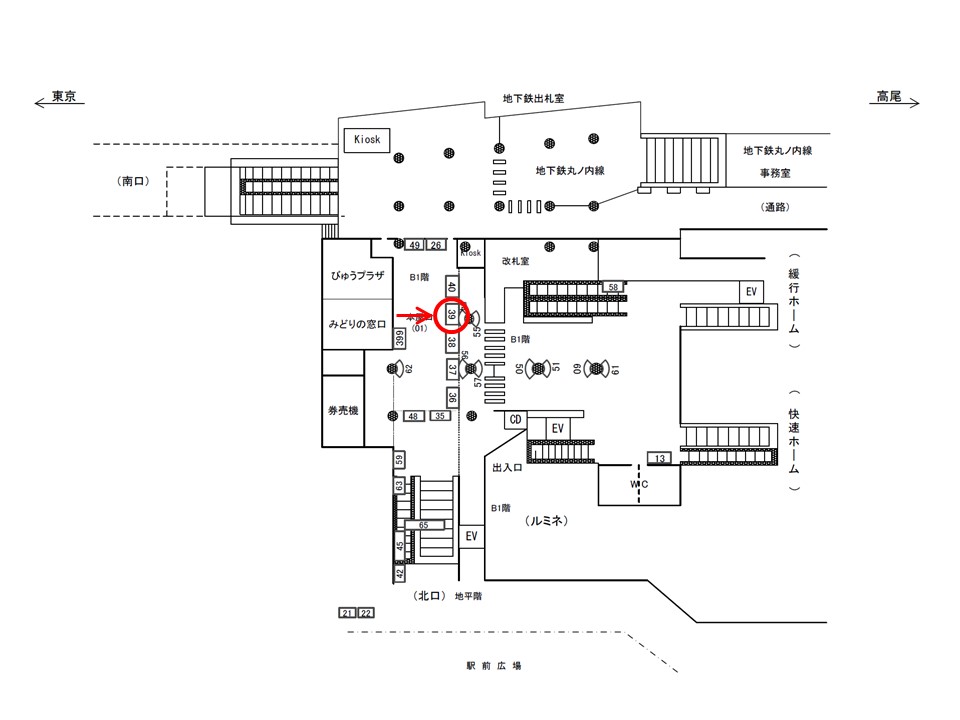 荻窪駅の東改札の外通路にある駅看板です。上部に設置されていて混雑時でも良く見える視認性の良い広告です。駅周辺のお店の宣伝にオススメです。