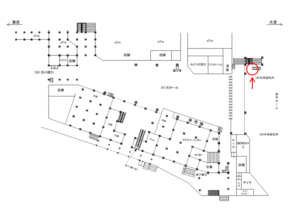 ○公園口№34 改札内コンコース(ホーム階段正面 公園口改札内) |