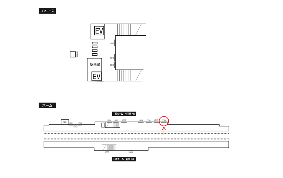 主に電車を待つ方やホーム上を行き来される方にご覧頂けます。特に新宿行きの上り電車を待つ方へ、線路を挟む形にはなりますが正面に見せられるロケーションです。