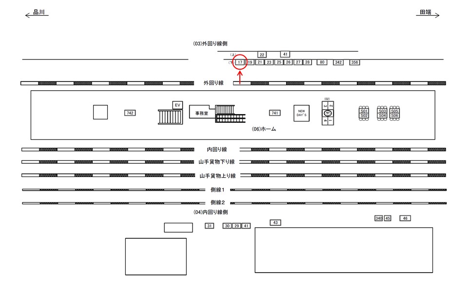 ○外回り線側№41 線路前(JR山手線 上野・東京方面) |
