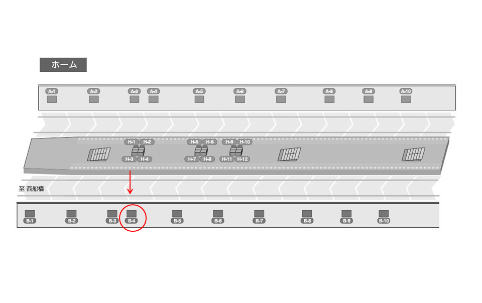 北習志野・西船橋方面へ向かう利用者が、上り線のホームの待ち時間に接触可能な媒体です。