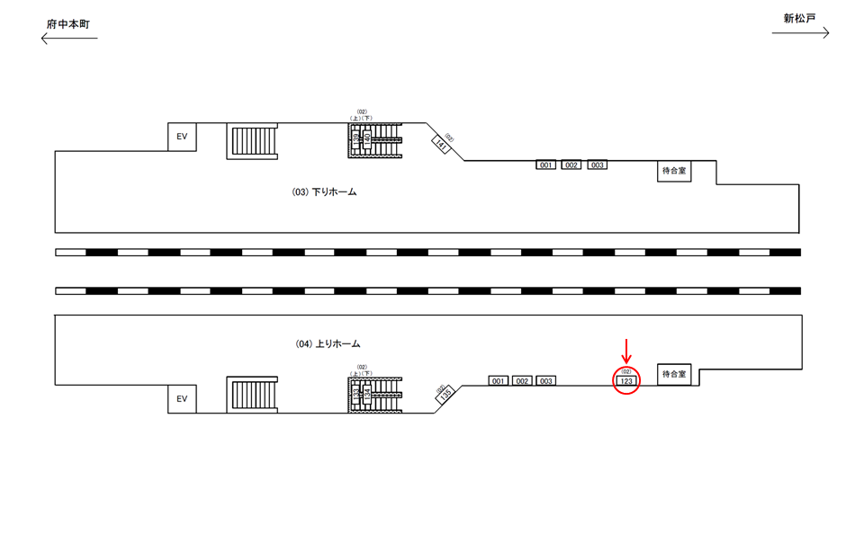 主に対岸の新松戸方面ホームにいる方に線路を挟む形で見てもらえる位置です。南流山駅から武蔵野線利用者を対象とした広告です。