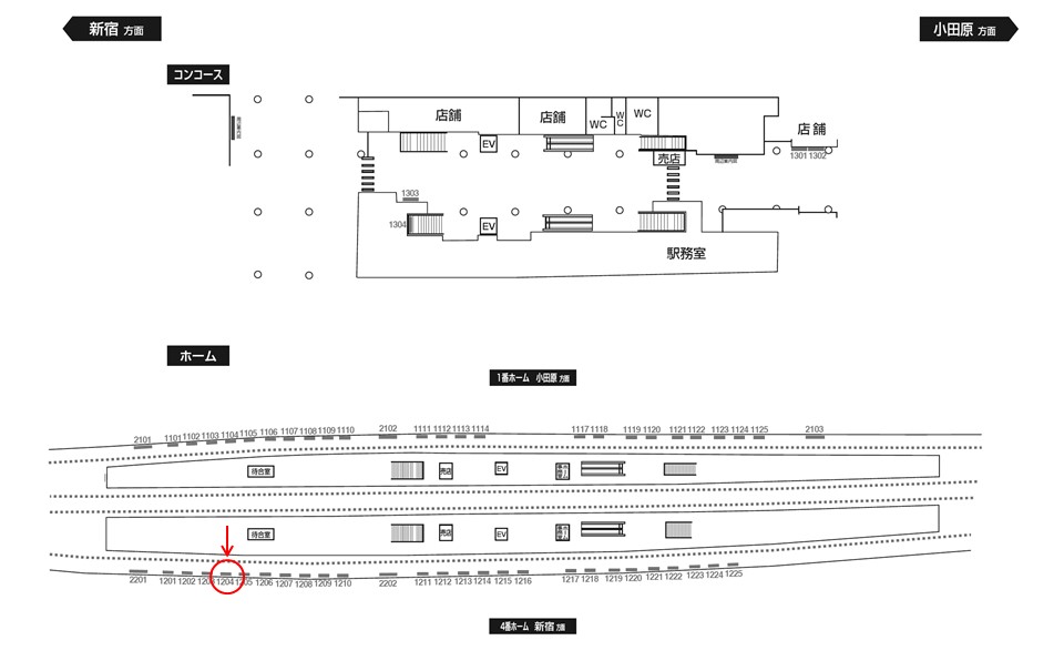 線路前(小田急線、小田原・箱根湯本・唐木田・片瀬江ノ島方面)