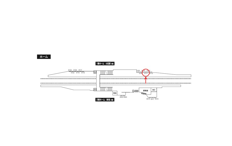 ホーム上(小田急線、小田原方面ホーム)
