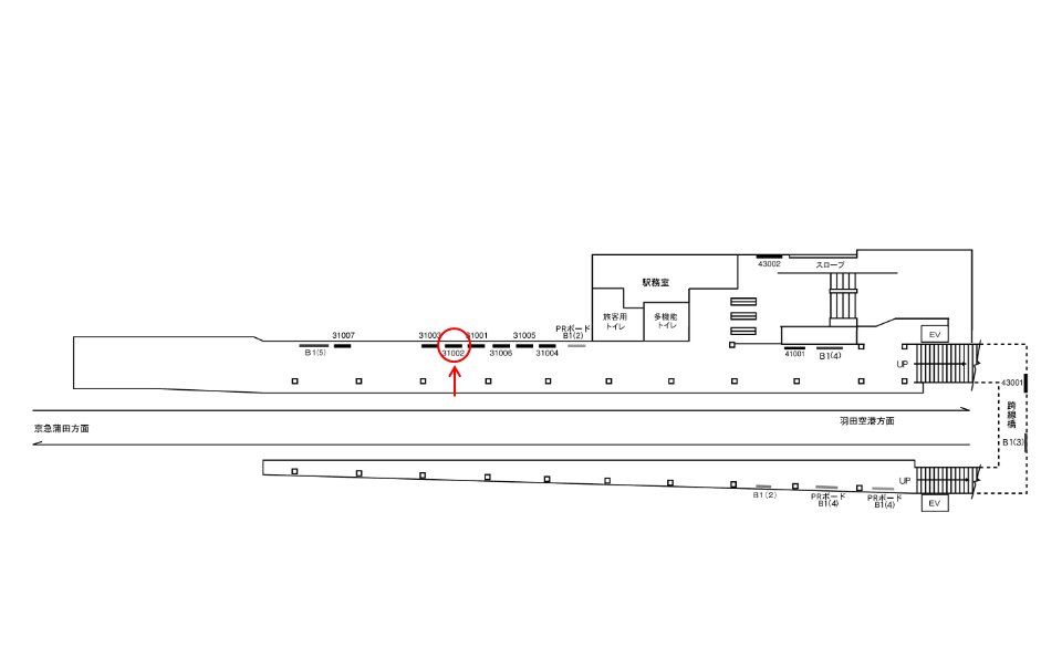・のぼり方向の品川方面への電車を待つ方に線路を挟む形にはなりますが、正面に見せられます。