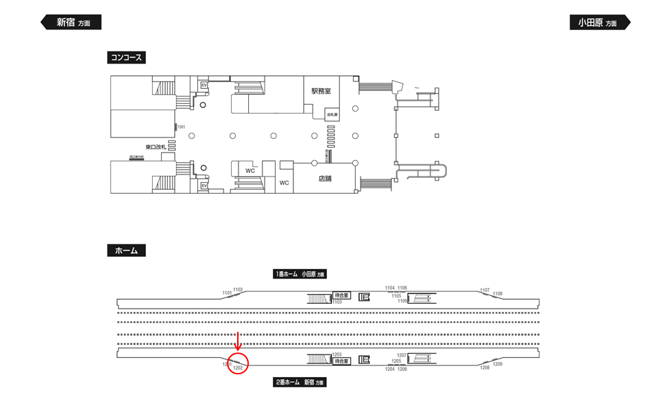 「小田急 和泉多摩川駅 №1202」はホーム(新宿・千代田線方面)の壁面に設置された広告看板です。こちらの看板は上りホームの中でも狛江駅寄りにございます。