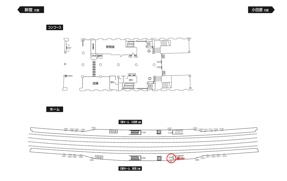 「小田急 狛江駅 №1208」はホーム階段正面に設置された広告看板です。