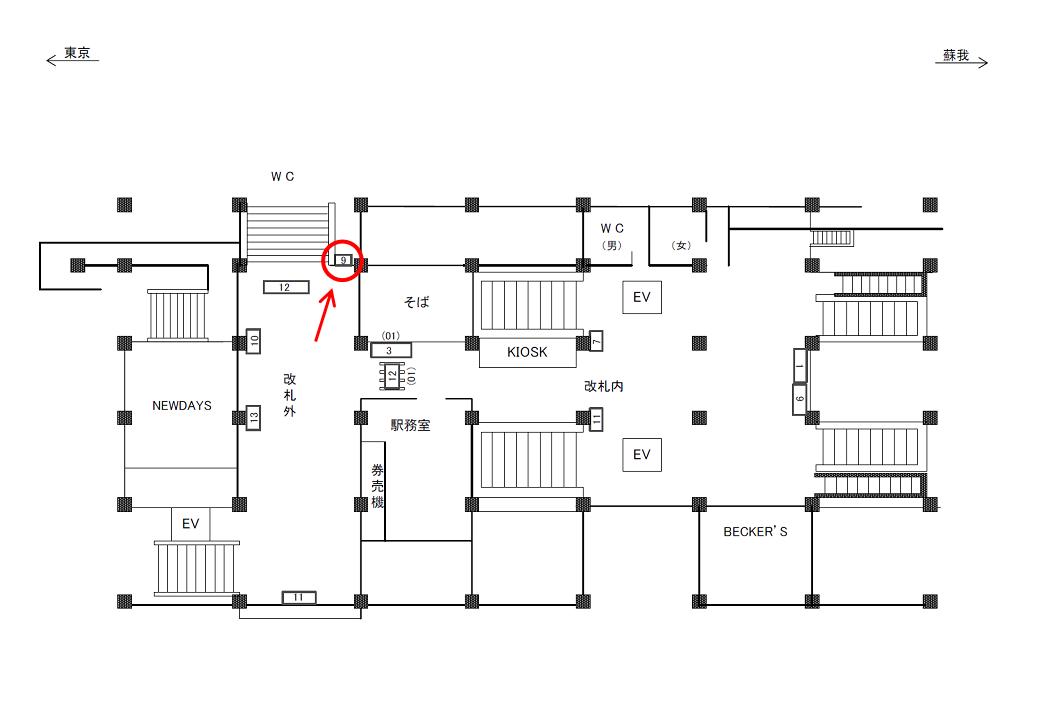 JR京葉線 南船橋店の改札外の電飾看板です。改札を出て右手方向に進むと見えます。