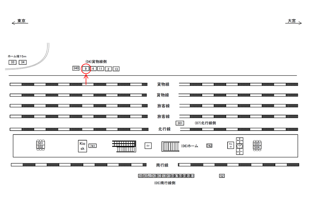この線路に停車する電車は南浦和行と大宮行です。JR川口駅から蕨・浦和・大宮方面へ移動される方がここから乗車します。