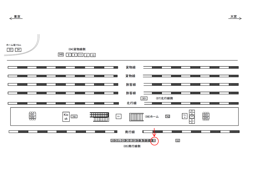 この線路に停車する電車は南浦和行と大宮行です。JR川口駅から蕨・浦和・大宮方面へ移動される方がここから乗車します。