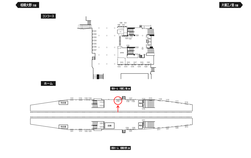 ・藤沢・片瀬江ノ島方面の電車をお待ちの方に近い位置でご覧頂くことが出来ます